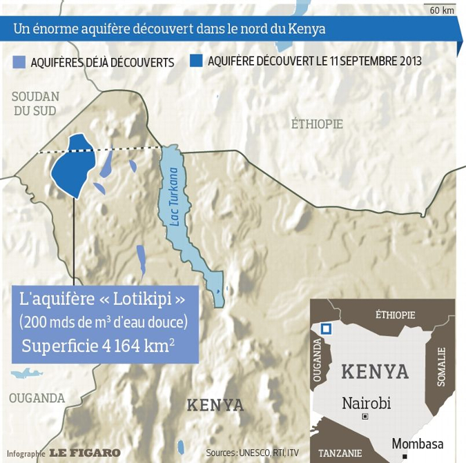 Pour moi, c’est la réalisation d’un rêve. Lorsque j’ai découvert cette fuite d’eau en Libye et que je me suis décidé à éliminer les indices de rugosité de surface pour ne garder que l’humidité du sous-sol, j’ai compris que j’allais déchirer un rideau, franchir une des multiples portes de l’univers pour accéder à un autre monde qui existe de l’autre côté : le nouveau monde de l’eau profonde sous terre. Le Turkana, au Kenya Cette expérience m’a conduit à m’occuper de plus en plus de la question de l’eau. En 2011, une sécheresse terrible frappe la Corne de l’Afrique. Elle touche 33 millions de personnes vivant en Éthiopie, au Kenya et en Somalie. Je dois dire que juste avant, en 2007, la même sécheresse avait frappé le nord de la Syrie, détruisant l’économie, tuant le bétail, ravageant les récoltes et appauvrissant les populations qui se précipitent alors dans les villes pour tenter de s’en sortir. C’est le début du « printemps arabe », sans doute lié à ce phénomène. Mais cette sécheresse massive, c’était vraiment l’enfer. J’arrive quelques mois après au nord du Kenya, au Turkana, une région aride sur la frontière du Sud-Soudan. Une fois de plus, la situation est épouvantable. Et lorsqu’on me demande de trouver de l’eau là-bas, je suis désespéré et désemparé, mais je garde à l’esprit que toute question a sa réponse. Les données géologiques et les premières images satellitaires sont peu engageantes. Pourtant, on doit trouver de l’eau pour permettre aux 200 000 réfugiés entassés dans le camp de Kakuma de survivre. Une fois de plus, les résultats dépassent les espérances. Ils permettent notamment d’identifier des « trous noirs », ce qui est un bon signe, car cela signifie que l’eau se trouve à une telle profondeur qu’elle échappe aux images radar, mais qu’on peut probablement en trouver dans le sous-sol profond. Et l’identification de ces aquifères, en utilisant les données géophysiques et autres, nous permet de proposer cinq endroits choisis comme cibles pour des forages d’exploration.